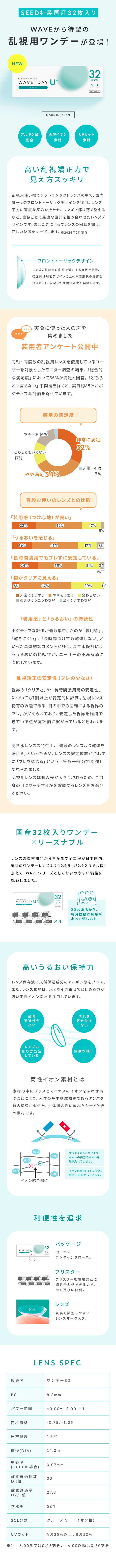 WAVEワンデー ユー プラス 乱視用 32枚入り